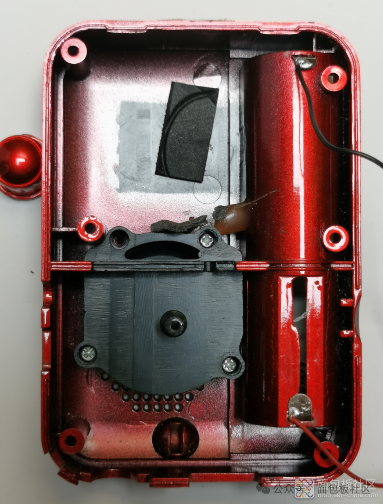 外壳里面做工还是蛮好的外壳内腔没有多少毛刺。贴有黑色泡棉,和封胶,主要是保护电路板。