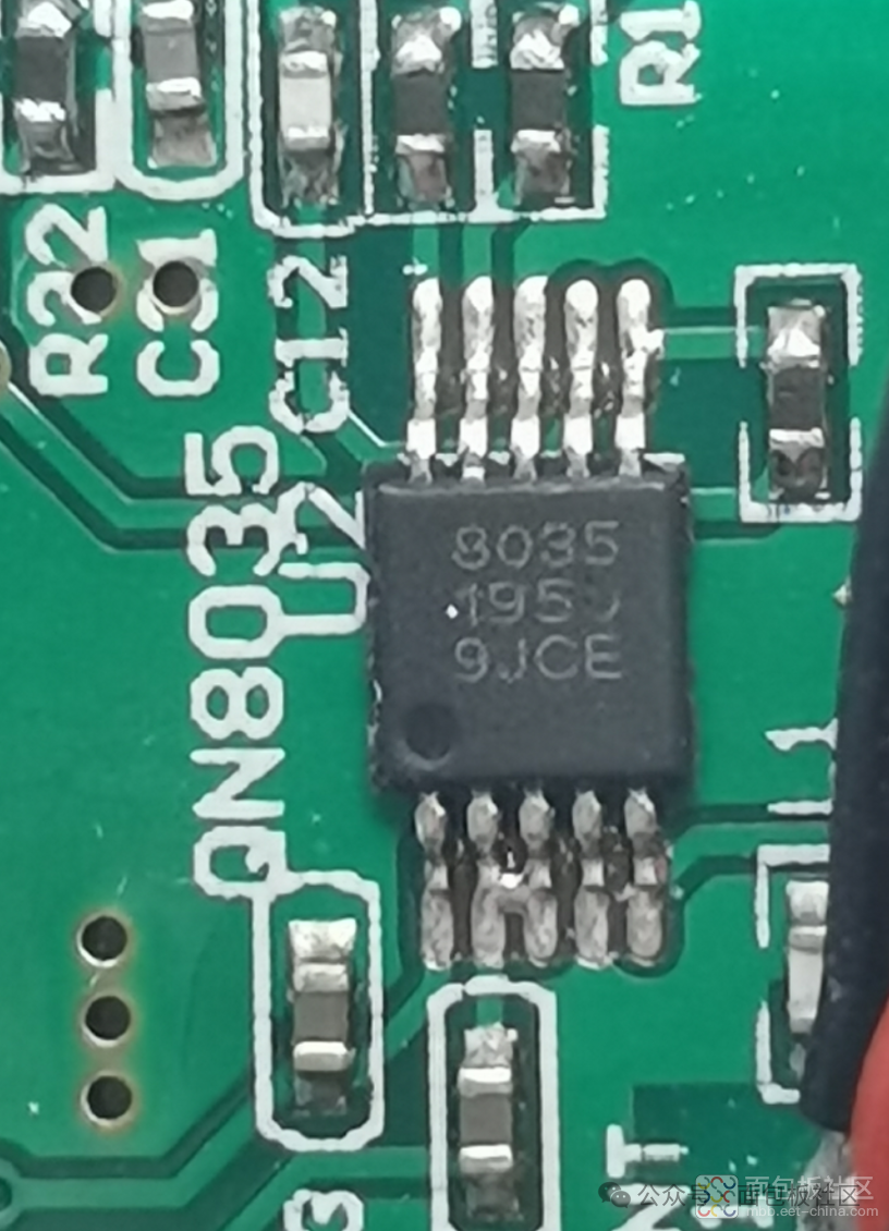 芯片丝印8035的这颗芯片是8035-SANE,它是一款MSOP-10封装的立体声调频接收单芯片,用于音响设备