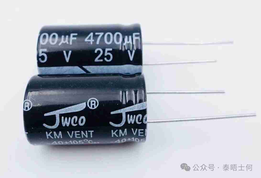 5. 铝电解电容(电源滤波主力):容量1–100μF甚至更大,有极性,用于电源整流后的滤波、退耦;早期多为铝壳轴向引线,体积偏大。