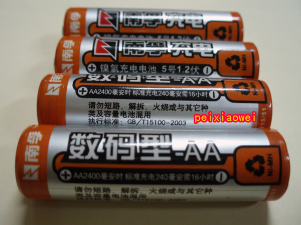 五、电池特写:四节2400mA,效果不错,经本人试用充满放在PL600上每天开机3小时左右,能用六七天