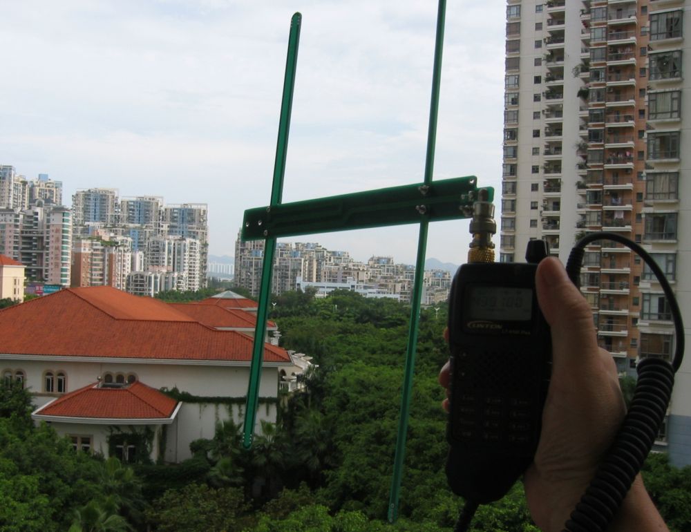 该装置的优良性能在实际使用得到了验证,2008年2月23日我的HAM朋友BH7JNK、BH7IWC、BH7PM在"湛江"去"海口"的船上时,为了进"海口"的中继台用手持机加拉杆天线,直频呼叫"海口"HAM不成,后换上该八木天线成功的直频到"海口"HAM,顺利上到了"海口"中继台。