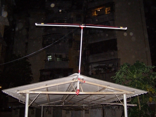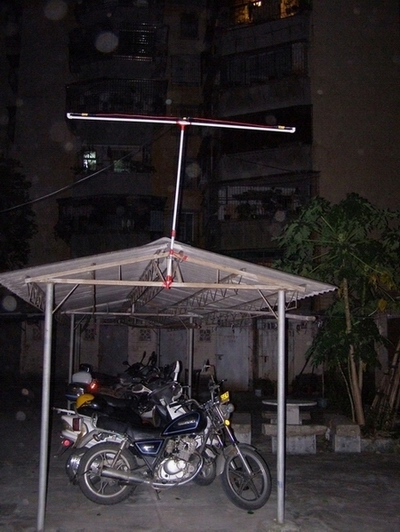 因为我这里环境有限,做好后只能安装在楼后空地的车棚顶上,离地面高度大约4米,接上我的BCL3000的高频头,接收能力果然大大提高,原来能接收到的电台基本信号强度满格,然后能接收到下列电台(收听时间 2008年8月20日晚上11点)