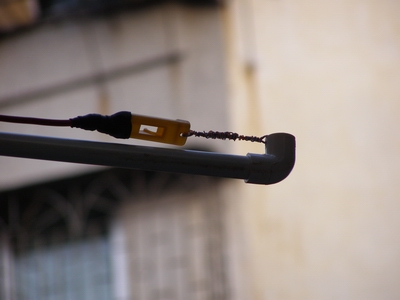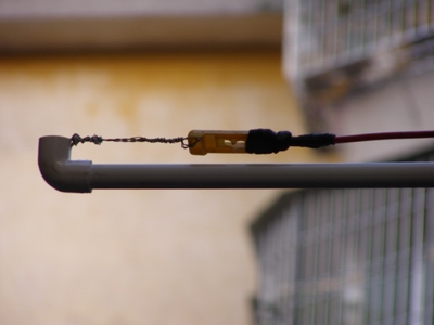 以下再补几张细节图,做工不是很好,见笑了,这里用上了 PVC管、 T通、弯头、塑料衣夹、放水胶布等。PVC管强度不是很高,这两天天气预报说“鹦鹉”快到了,不知“鹦鹉”来的时候顶不顶的住?下次应该买再粗一号的就更好了,或者找木工做一个T形木架,木头外面涂上桐油防水防晒。