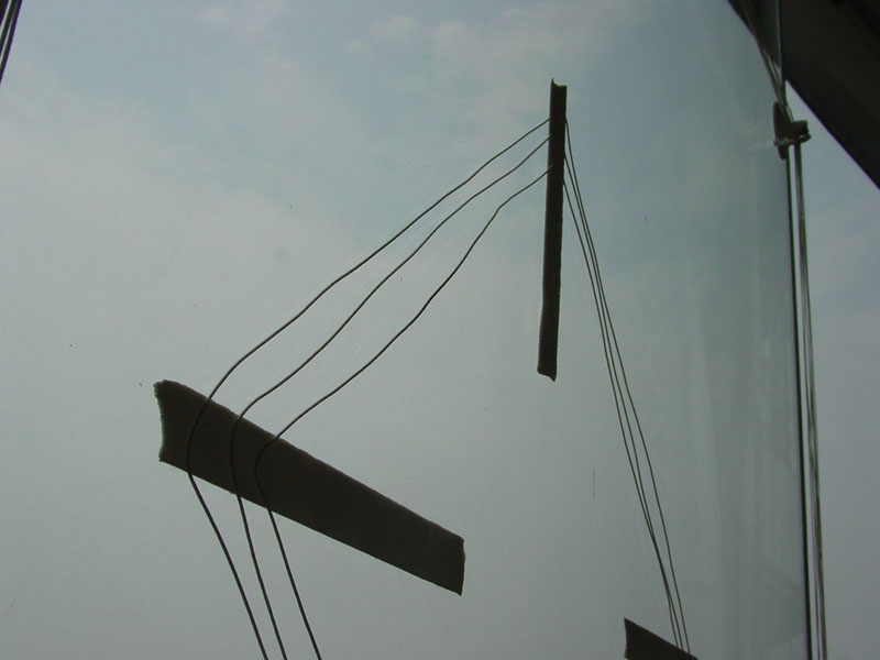 方框4角固定点用强力吸盘,超市里有卖4个9元钱,线用细多股铜线或漆包线都可以,1,2,3,3,5,6,7饶7圈就好了,写着容易做起来也简单,不过我今天花了不少时间,因为嫌吸盘太大难看一度想改一种自带不干胶可以穿线的固定件,结果发现穿线比饶线困难多走了不少弯路,最后无奈还是改了回来,不干胶用汽油可以轻易洗去,超市有卖小型塑料挂钩,选择合适的贴在4角应该比现在这样漂亮.