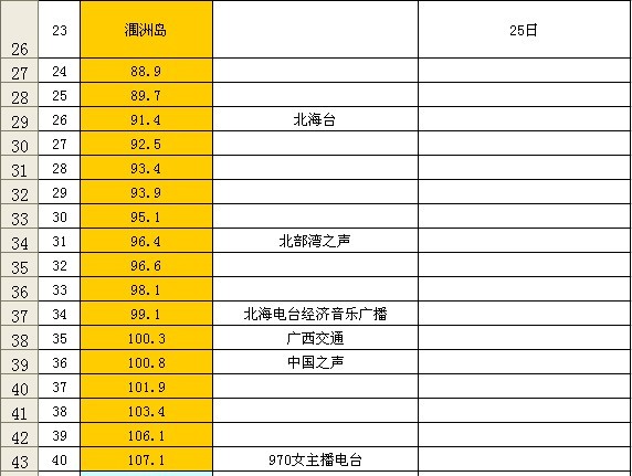 2011-9-24(25)北海银滩-海--涠洲岛-海上收听记录 广播发烧网 发布于 2011-10-8 00:00 BCL 文章目录 × 推荐阅读珠三角九个城市以及港澳电台频率汇总浙江省各地区广播电台频率(修正)珠三角广播电台(按城市划分,标注主要的播音语言)中国主流城市FM频率表全国各省市中波广播频率详细表浙江地区广播电台频率中国大陆中波电台频率表 (上)西安市最新广播频率表南京地区广播电台频率一览表(最新)辽宁地区FM频率 上一篇 来说德劲DE1127 下一篇 DE1127简评