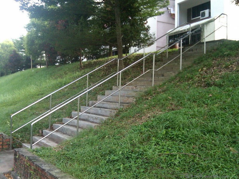 下图是在我家后门通向河边散步小径的斜梯,仅二十级台阶(上),新建成的63米长的无障碍通道(下)。