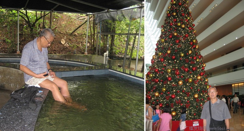 在新加坡,春节曾去乌节路,参观重4吨,高2.7m的大玉佛,也去过闻名世界的植物园。平时也去小印度、荷兰村、芽茏等处品尝美食,也到达阡鱼场的SPA鱼疗。参观大商场门口的圣诞树,据说是全新加坡最高的树。