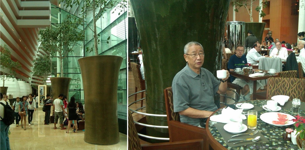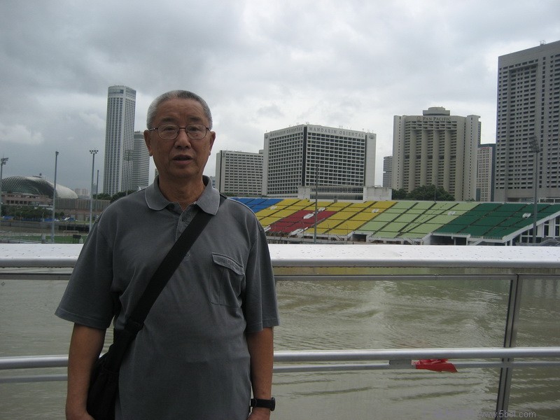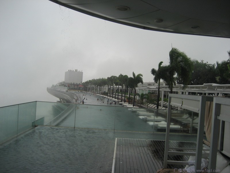 酒店大堂接待处,气势恢宏,5米高的花盆,在室内种了大树。早餐自助餐,每人48新元。除了在房间听收音机收测外,迫不及待的去57层楼顶的游泳池,长150米,宽20米,据称是世界最高的人工泳池。我当仁不让地下水了,可能是年迈之故,感到有些冷。照完相后,就收工休息了。
