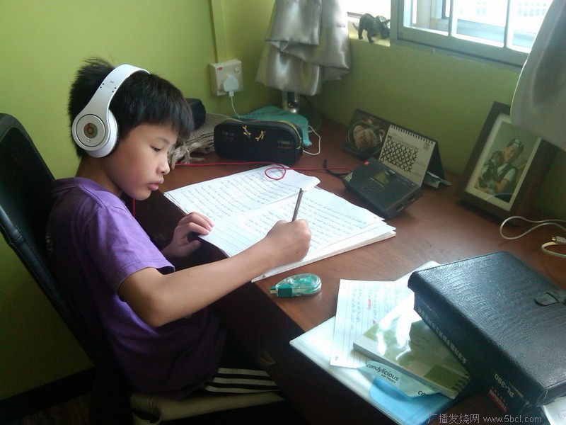 每天订《联合早报》(60大版)、《英文海峡时报》(156大版)和《我报》(中英文各10小版),这种多媒体传播条件极好的环境下,广播有它存在的余地吗?邻居陈教授,他是新加坡归侨,五十年代初回广州,在华工学习,后留校任教,与黄贯光教授共事,也可能曾为梁总他们上过课。陈教授退休后回老家新加坡定居,家中手机、电脑、收音机一大堆。和我一见如故,我送了他一台PL-360。他为学生的工厂生产这样好的收音机而高兴。我还送他一付铁三角(Audio Techanic)耳机,红花绿叶两相映。他开始津津有味地听广播,可惜好久不久,耳机被他女儿拿去欣赏音乐了。我给小外孙一台PL-390,还帮别人带一付怪兽(monster)耳机给他,他边做功课边听广播: