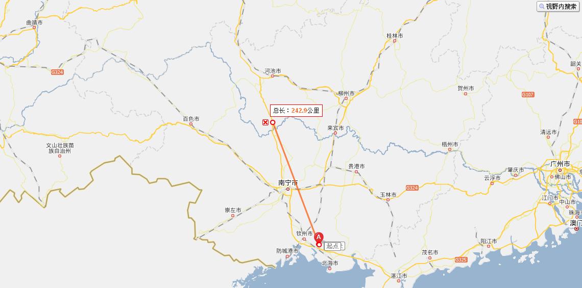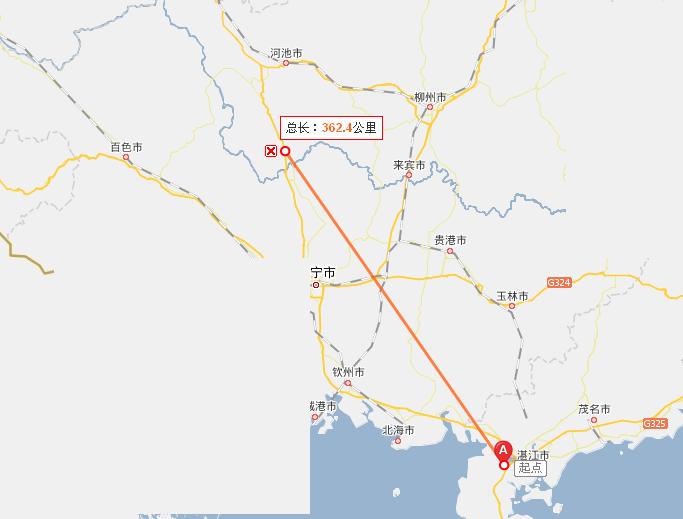 而南京到儋州(海南) 1670公里,准折返中点大约在湖南南部(郴州)上空。