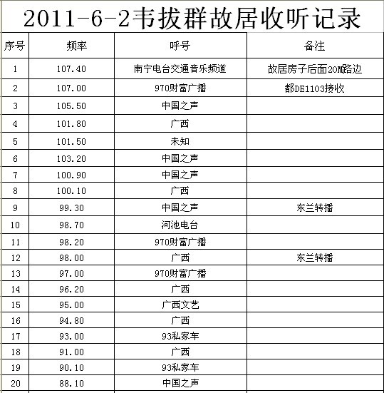 同时同频率还收到玉林的某电台(广告内容的地址和电话都玉林的。白话说得过