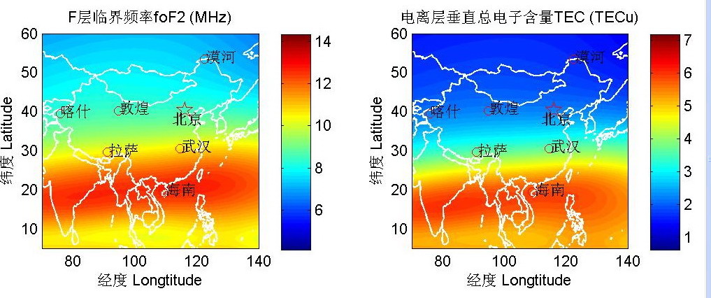 电离层电子浓度总含量(TEC)又称电离层电子浓度柱含量、积分含量等,是单位面积内电子浓度沿高度的积分。