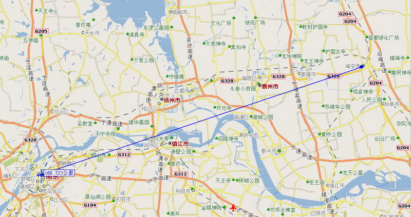 按照地图测距指示,直线距离约340公里(南京-临沂)