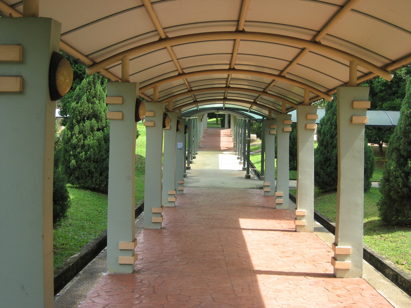 各组屋相连的走廊,大多数已经改造为有遮阳盖的走廊。下雨时,居民可以不带雨伞,一直走到小区门口的巴士站。