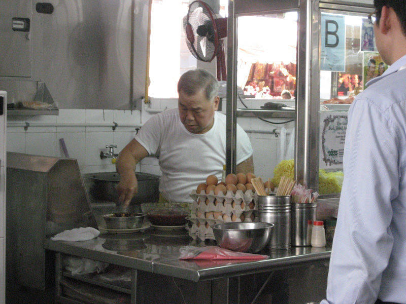 温家宝总理参观的大巴窑组屋区,食街很有名,我也去过。在食街一家“源记鲜蛤炒粿条”,排了25分钟的队,购买了两碗炒粿条,每碗2.5新元,味道很好。排队时,仔细观察食客,老少皆有,都不怕排长队。轮到我时,我想二碗粿条一起炒,一分为二就行了。其实不然!老师傅硬是一碗一碗分开炒,工艺讲究,一丝不苟。人家告诉我,老人家已经炒了三十三个年头了。我在品尝美味,感动之余,恍然有悟:工作不分贵贱,做好(学会)每一项细致繁复的操作,有一份自尊的好心情在支撑,这是新加坡人在十大梦想的第二位——自我提升——的真谛。
