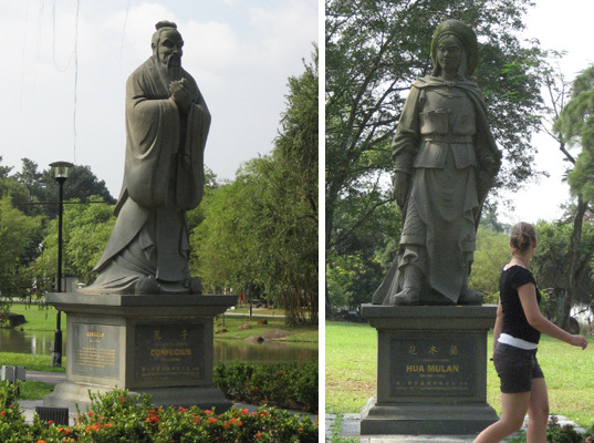 在新加坡的华人心目中,对历史上中华民族传统英雄是谁?我在裕华园(又称中国花园)找到了答案。他们是: