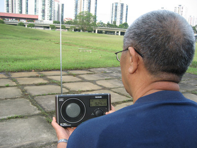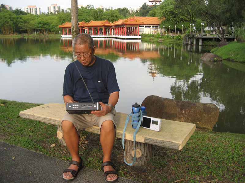 2007年11月至2008年1月,再次去新加坡探亲,当地冬季炎热如夏,温度24~32℃,每天都下一场中雨。因为家人上班的上班,孩子上学的上学,我行动比较ZY,可以用心去了解新加坡的居民情况、物价涨势、大众化的美食……当然也听广播,并企图用手中的收音机来绘制城市广播地图,藉此拉近广播收音机爱好者与电台技术工作者的距离。在2007年12月下旬,通过互联网,看到“世界华人无线电与收音机爱好者协会”成立前后的盛况,更感到创始人的辛劳,在此谨向霍定洪先生、梁伟先生、邱健球先生及各位会友致以敬意。