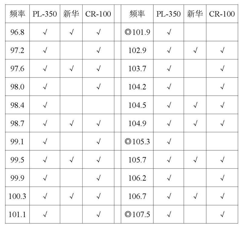 2、可收调频电台频率(MHz):92.9、94.6、95.3、95.8、96.3、96.7、97.6、98.3、98.8、100.9、101.8、102.5、103、104.1、104.9、105.4、105.7、106.7、107.5。