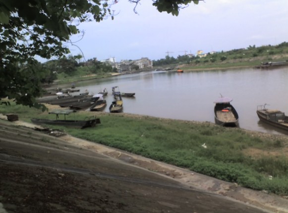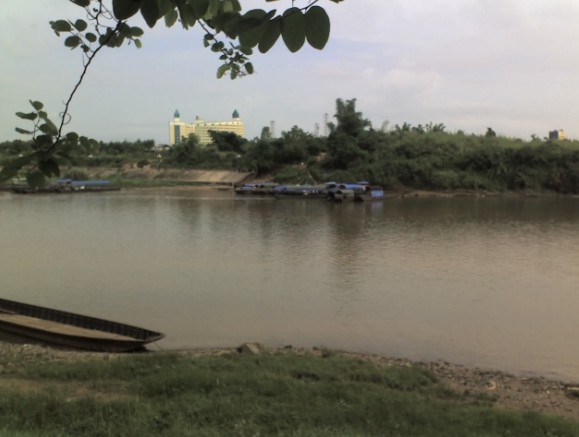 这就是东兴中学门口的北沦河 对面的黄色建筑是越南茫街的利来博彩场,过几天我也要去看看
