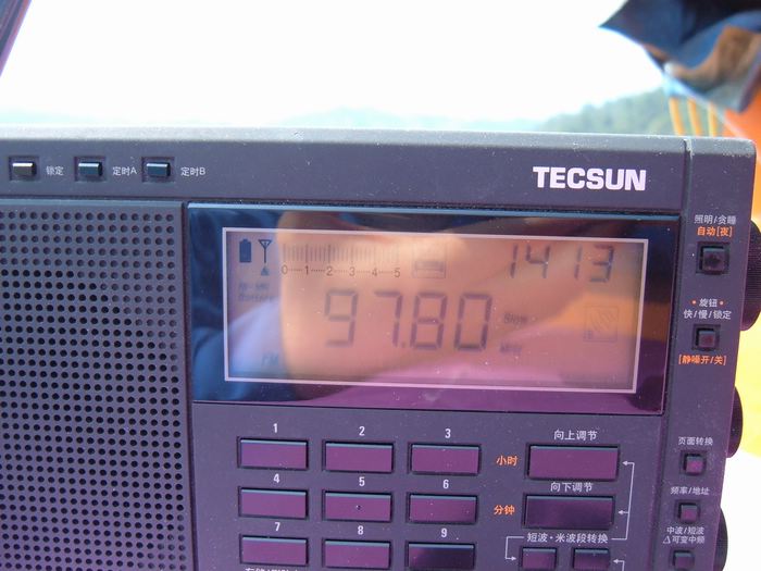 还不少,这对于远离城市的大山里:88.60MHz、89.50MHz、90.80 MHz、94.8 MHz、97.8 MHz、99.20 MHz、103.20 MHz。信号强度都有五格,但相对于城市收听来说,还不是那种背景相对很安静的调频,也许是直线距离100多米外中央控制室电气设备的干扰。