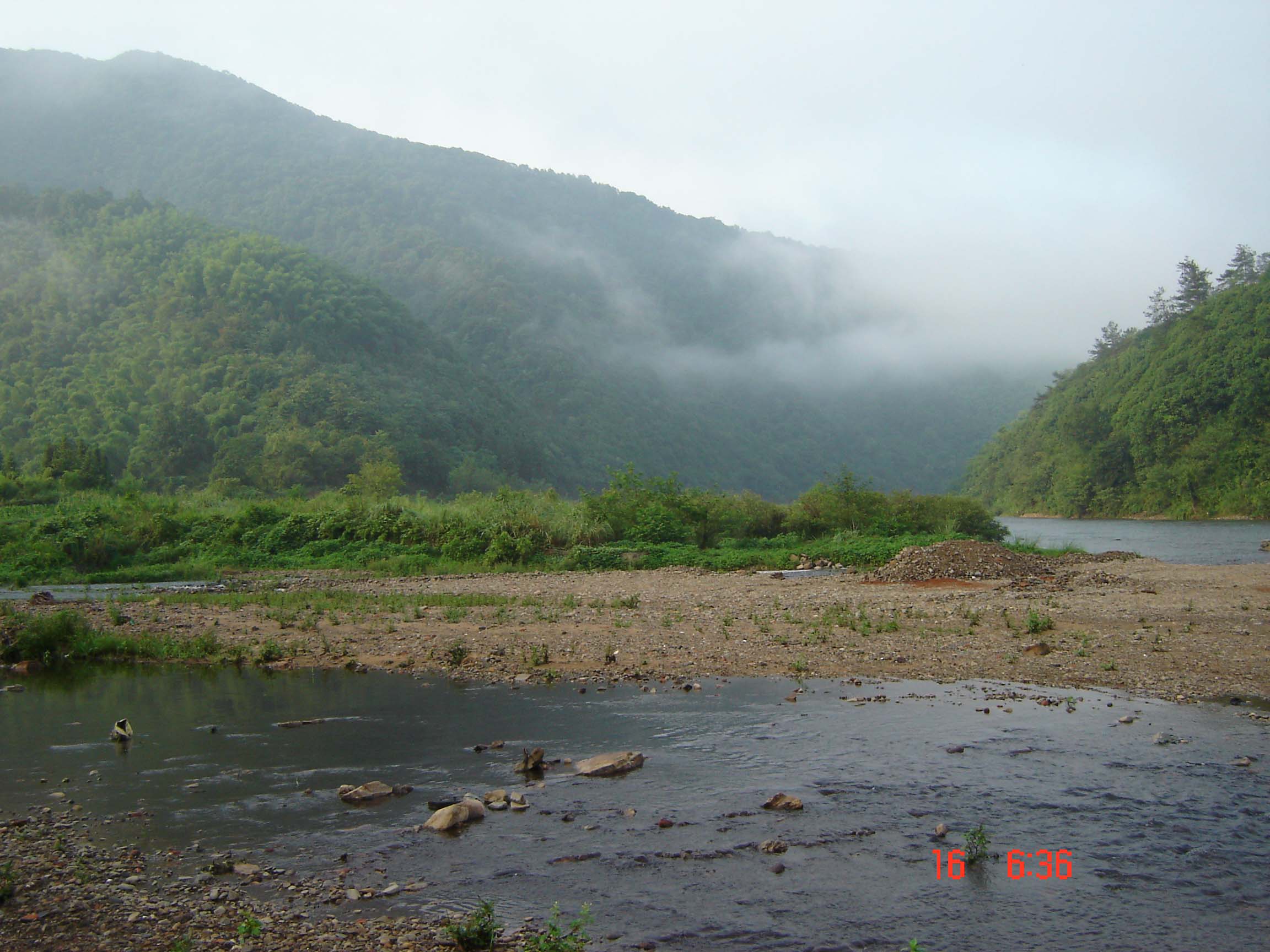 15:00 到达平垣村(黄村镇),上岸乘中巴回县城,回首遥望徽水已经远去,起伏的群山依旧拌随着行了一程,好象在与我们告别,送行.再见徽水,再见泾县.