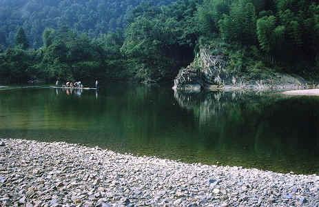 ---每每筏过,游人举起相机,立于峭壁上之孩童纷纷跃入碧水中,溅得水花四起,尔后嬉戏欢闹.可他们非常自然地随手捞起游客抛弃的漂浮垃圾.套句现代用语叫"强烈的环保意识",其实他们才真正懂山水,爱家乡.