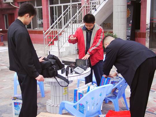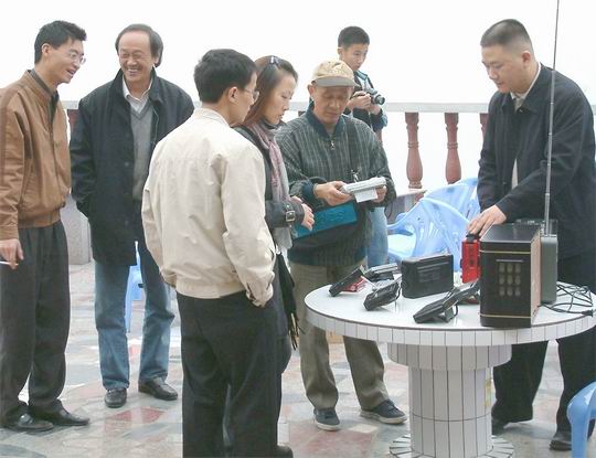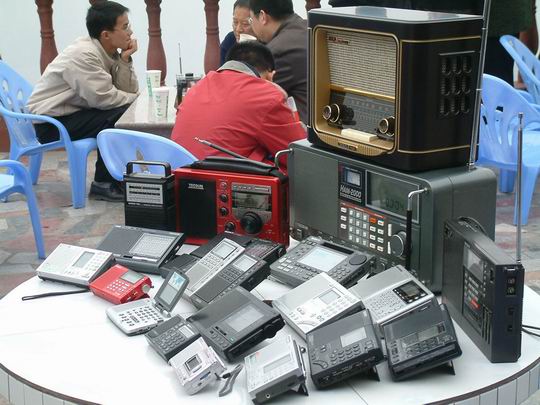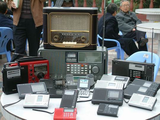 图片中间拿机者,一家兄弟6人超级发烧,收音机一买就是6台,如德生737--6台,B2K--6台......。