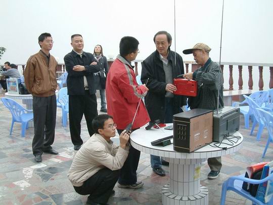 当日的BCL活动还有好几位“退化火腿”参加,不过江山易改,本性难移,到了山顶也不忘作QSL。