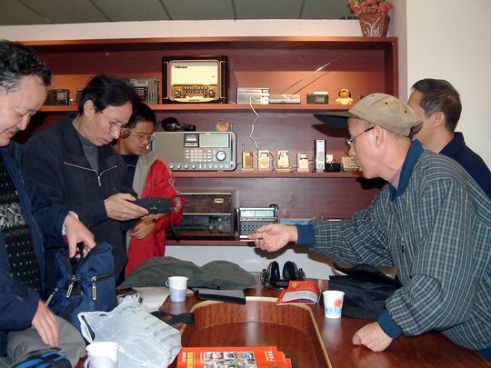 注意上图中最右的老前辈,下图中的珠江牌单波段机器是他本人于65年购买的,时价98.20元,当天机器没有带到现场,其实大家都想一堵为快。。。
