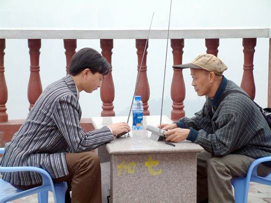 俺于2003.11.08离开绵阳,LP携俺和小女,火车N小时前去探望老丈人。一路上见到所有能流动的水皆为“臭水沟”,大杀风景。老丈人家居住一小镇,好在风景宜人,空气清新,小住一周,正要打道回府,突然接到重庆方面爱好者邀请,“欢迎参加重庆的BCL活动”,想想车程只有一个小时,加之自己离开重庆屈指一数有28载,便应答下来。14日把LP和小女送上返绵的火车,便奔向重庆。