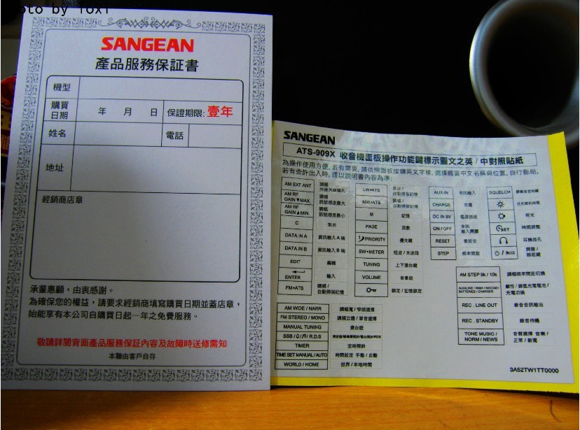 感覺有一種民國證券的感覺,右邊的鐵貼紙極大的方便了大媽大爺的使用,給英文不佳的人也賦予了方便的使用性。不得不說AS909X無不在細微之處替消費者考慮到,再次說“收音機不要多,有ATS909X足矣”