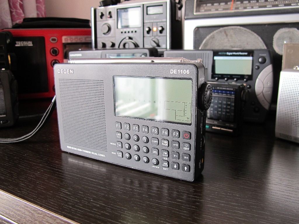德劲1102大小适中,耳机音质好,是我听得最多的机器之一。它的造型优美,坛中有人说是缩小的7600gr,模具做工也较之前的国产机有了质的飞跃,而且音源分前后两级输出,耳机收听不管是音质还是底噪都是便携机中做的比较好的;特别喜欢在夜里听1102,蓝色的按键背光和蓝色的显示屏,在夜幕下特别让人着迷,犹如一个暗夜蓝精灵,陪伴我渐渐入睡。(机子放在单位,借网上图来用)1102的好些功能在国内也具有创新性,比如开机闹钟可以预设电台、预设音量;电台可以先ats存储然后复制到其他页,相当人性化;它是国内机中较早试用短波ats的,而且效果还不错。