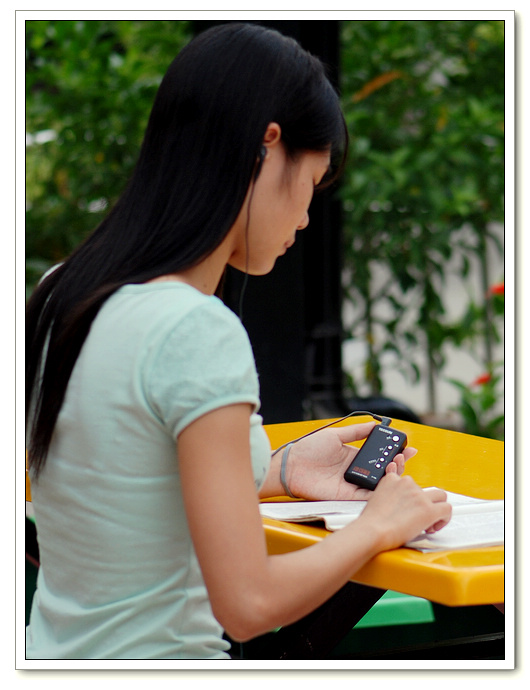 该机自带的耳机外观比较时尚,带有比较软的橡胶套,佩戴舒适,低音效果有所加强。收听摇滚歌曲动力十足。