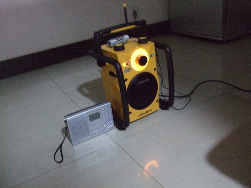 现在我决定烧声音了,只有声音才是硬道理:当然能打磨出好的声音的机器,性能也肯定差不了;我先用一个较便宜的价钱从任老弟那儿购进了山进D-3L,说明书上写的是五寸的喇叭。这个机子的声音和性能都称的上强,高低音可调,力量足。除了较大的底噪(用电池底噪也不小)和那个调谐自动静音外,我一度认为购机之路到了尽头。