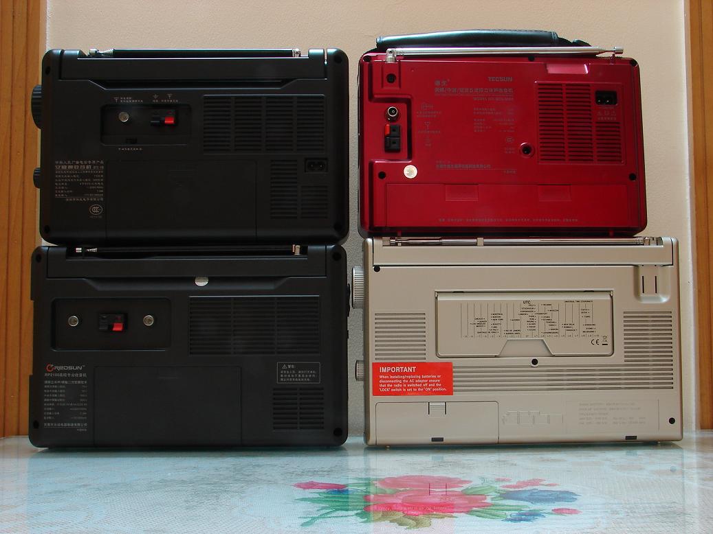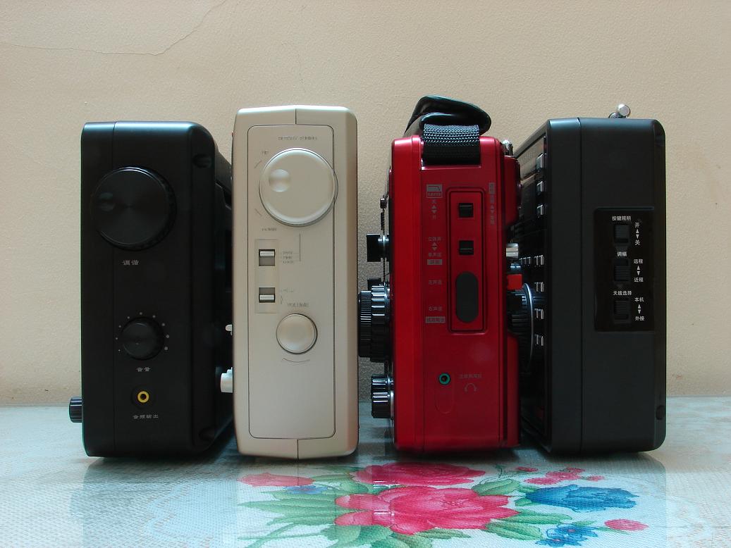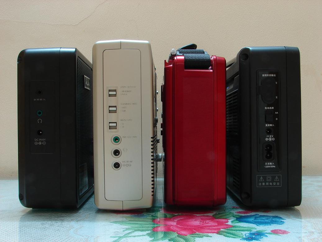 国产收音机中四款个头差不多的大便携机,其中德生BCL3000是手调数显机,其它三款都是传统的数调机,其中山进的还带有老式的磁带播放功能,它们共通的特点是比普通收音机要大的多的音量和优质的音色,有幸把它们集合在一起作一番比较,和喜欢大机器的朋友们共赏。