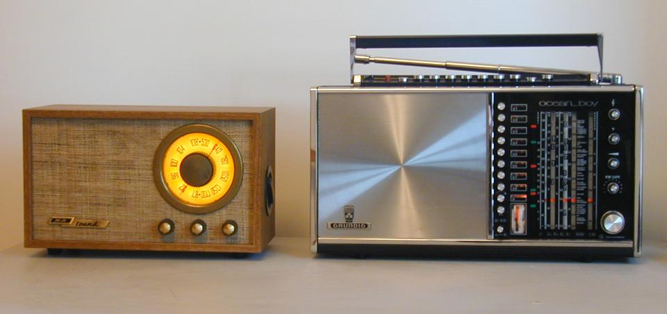 转了几个电台的音乐节目,印象非常深刻的是声音干净,音乐味浓,高频顺滑,中频浑厚,低频强劲且干净,比R-301的低音快速,中高频也亮一些,很象老根德的蓬蓬声,于是把手上的根德OceanBoy 209拿出来比较了一番(晚上光线不好,照片是手持1/4秒拍摄的,没有用闪光灯,凑合看看吧)