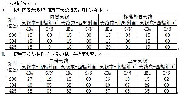 在天线效果上,明显大天线优于标准外置天线,在304KHz上,增加了25dBu。在425KHz频点上,使用4种天线,最大电平值分别是:18-29-38-37dBu。标准外置天线能提升11dBu,而二号、三号天线又对比内置磁棒天线各提升20dBu和19dBu。而在304KHz频点上,则二号三号天线提升电平值达到25dBu。
