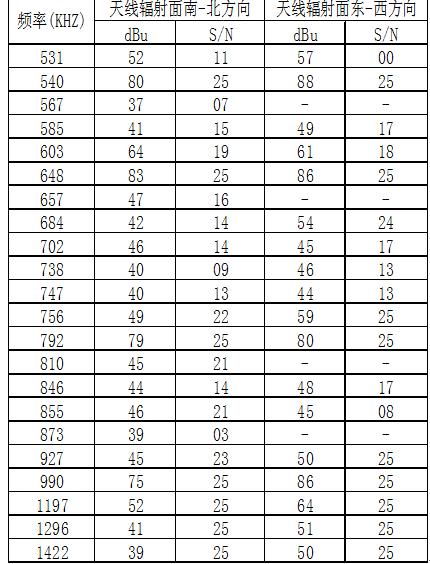 1 PL-360与某对比机型都采用机内天线时的场强与信纳值: