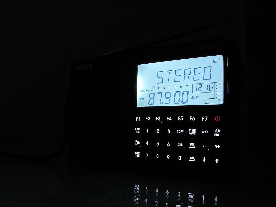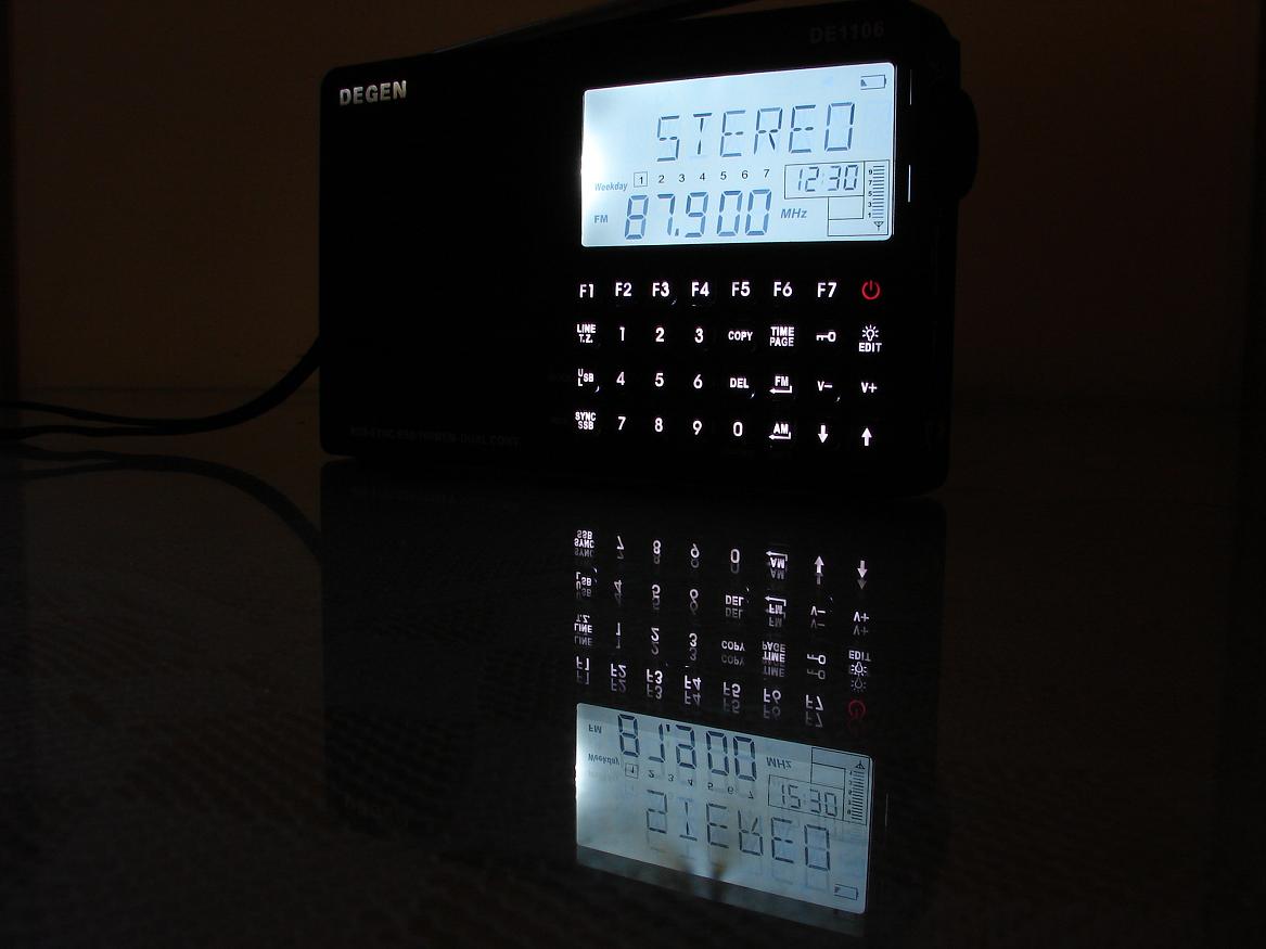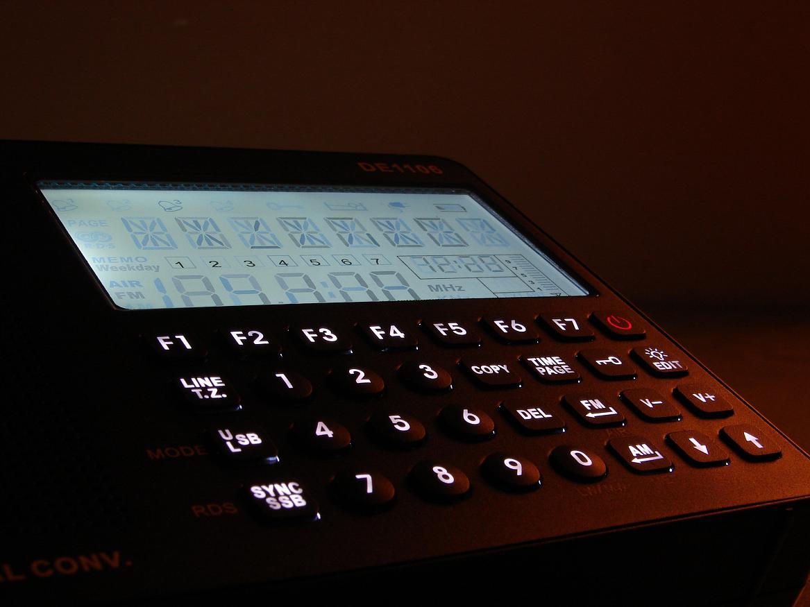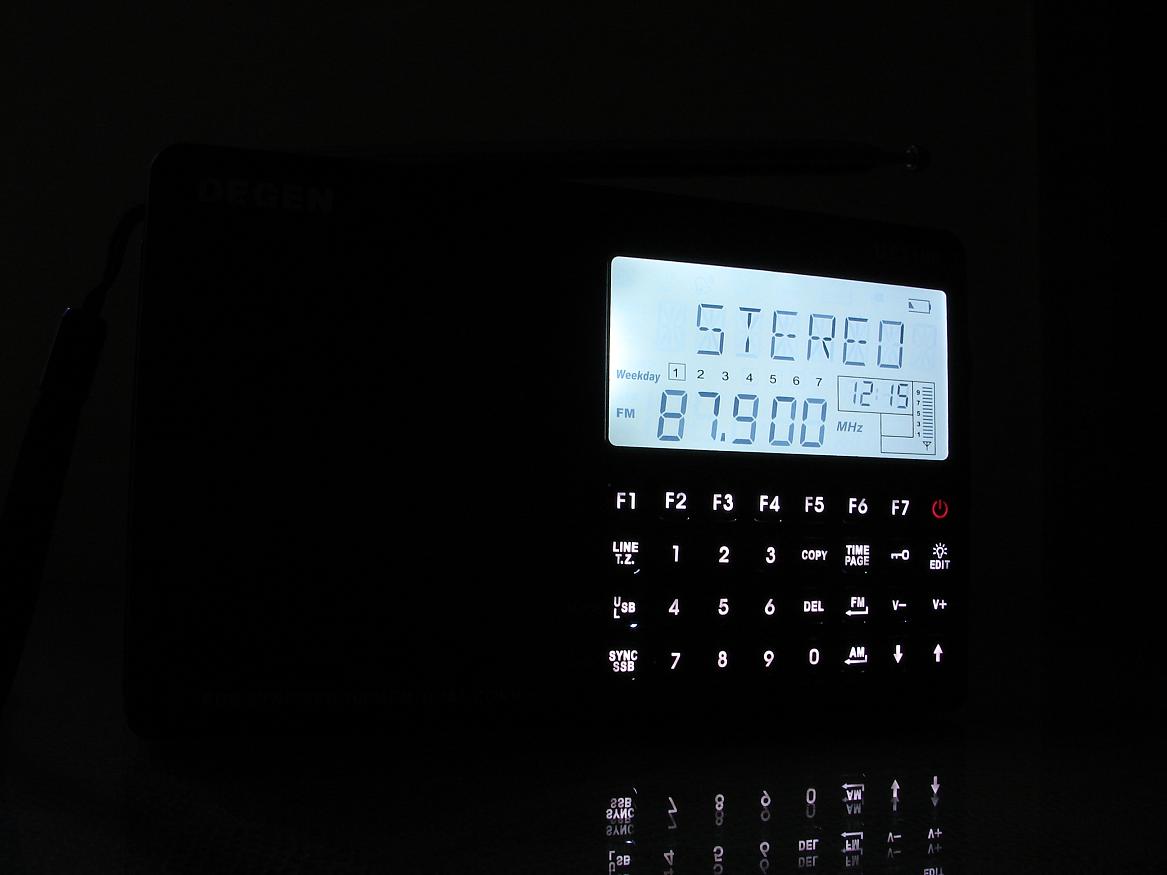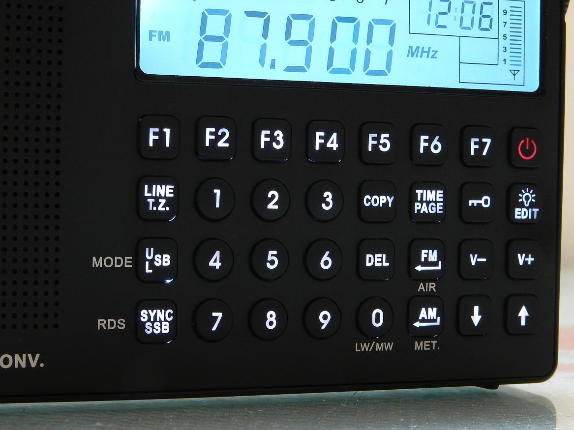 按键有白色背光,很显眼,由于FM采用DSP,耗电应该比传统数调机要小.