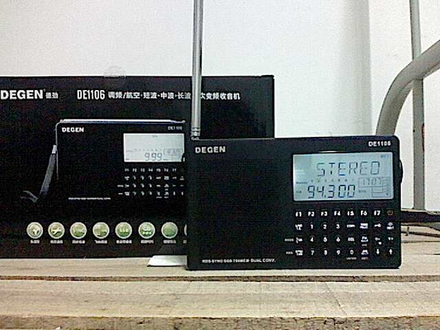 调频:因为我在肥东县城,距离合肥市区也就20多公里的直线距离,收到的尽是强台,无法比较灵敏度孰高孰低。有朋友认为DE1106有方向性,至少我的比PL600有更稳定的表现:在我宿舍,听FM93.5KMZ中国之声,同样放在桌子上,PL600有较强的方向性,而DE1106方向性较弱。选择性肯定比PL600要好上不少。无台时,似乎比PL600安静一点,且伴有稍许的镜像。但是,步进显示很显然没有DE1103的0.025KHZ显示的精确了。我和高兄在短信讨论DE1106的灵敏度的时候,它表示满意的。