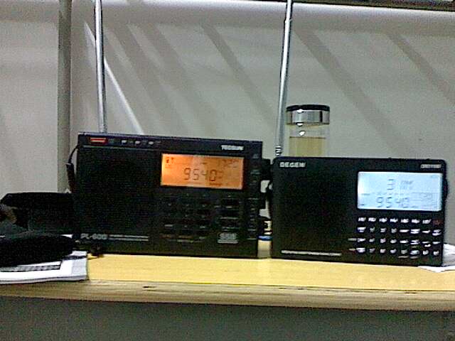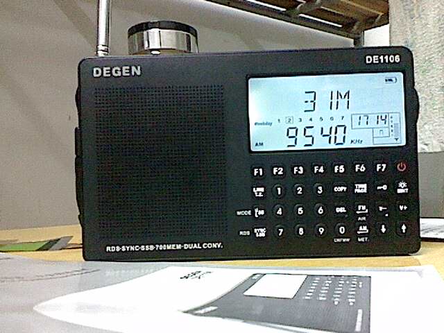 为了确定,我今天下午(四五点钟)对比收听了9540KHZ希望之声,可以肯定是中等以上强度的电台,在PL600低噪声很小,而DE1106却很大。我有些担心了,又搜索了7325KHZ法国国际广播电台,仍然是背景噪音很明显,我不能推测是是不是DE1106比DE1106的结论,我很害怕一台500元的封顶之作会比平民阶级的PL600的灵敏度还要低。于是,一痛搜索,无论是强台还是弱台,DE1106背景噪音都比PL600大。但是不至于恐怖,只是很明显,对于对收音机很苛刻的我们来说,比较明显!也许比安键09要好些,但我没有对比,09已经在柜子立静静地躺了不少日子了,欣赏有余,使用无心。