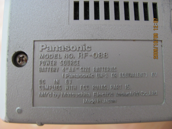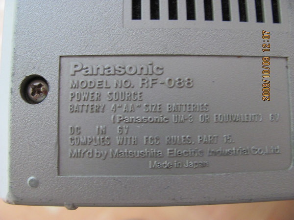 前二天从3罗处购得松下PANASONIC RF-088电调式收音机,因为该机品相差,并且缺少电池盖,当时很久不见有人买。广坛有这种现象:没有短波的机子不好卖,可是我们在大城市,在水泥钢筋的楼房里短波和中波几乎没有什么可听,如果硬要听,就是二个字:难受!我平时听FM比较多,所以我就是觉得这个机子很特别,特别在哪里呢?在于它的调谐系统。