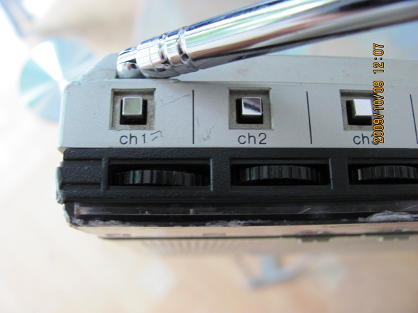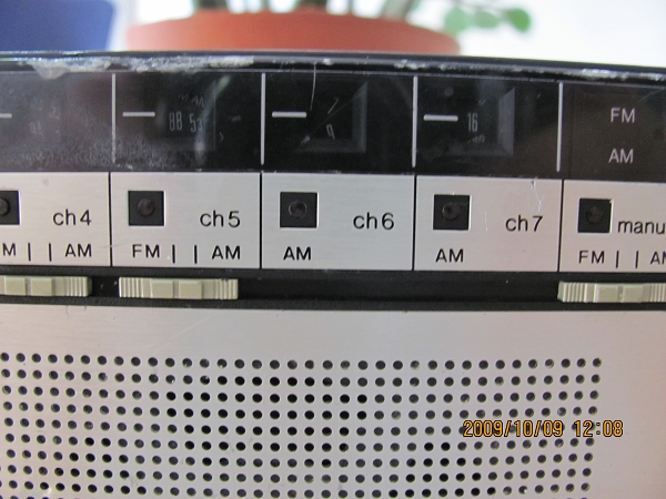 写到这里,大家可能会奇怪:这样的选台方式有什么特别?但是你看看国产机有没有一款像这样的设计?我就是认为这款松下机设计独特,你不得不佩服松下的设计师,这样的选台及调台方式及布局也被他们想到了。要知道,这是一款1979年上市的机子。距今天有30年了。而且,7个小盘子选台其中有3个是双波段共用的,即有FM/AM波段开关供你选择。