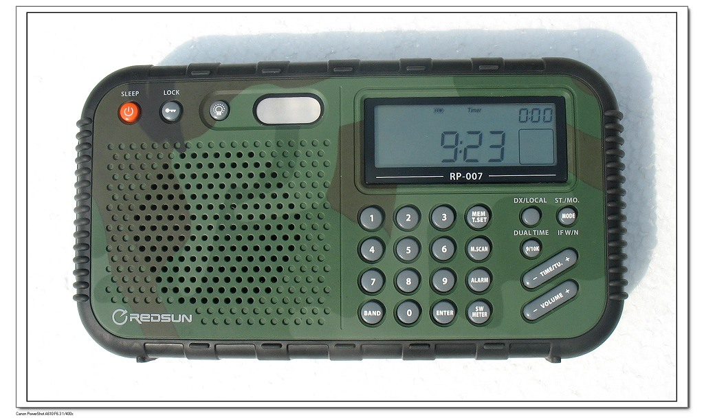乐信在推出RP2100让乡亲们刮目相看之后,后续一些普通机型无论是品质稳定性上还是工艺或者性能上,我觉得和德生徳劲的同类机型都是有差距的,偶尔去乐信的论坛看看,和徳劲论坛期盼1108一样,乐信粉丝关注的是RP3100,没想到3年的期盼没有迎来RP3100,却迎来了一个解放鞋样子的收音机。这个就是007。007在两年前好像已经投入开发,曾工告诉我这个是俄罗斯军方的订单,三防 IP65,乐信投入了大量的精力和物力,现在想来,这个乐信对007投入精力和重视程度,应该和德生对S2000投入的精力和期盼相当吧,但我当时并不太关注,因为我只是把这个收音机看成一个能防水的收音机,特别是前阶段在国内市场始发的价格高达700多元,价格相当于两个PL600,更是招来一片嘘声,我私下也这么想,乐信怎么了?
