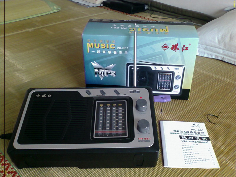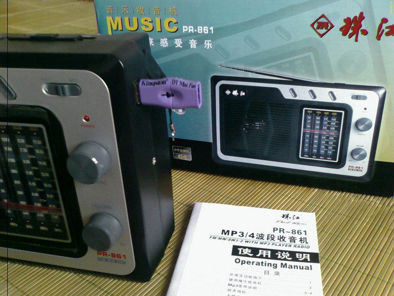 珠江PR-861 MP3四波段收音机现在已经批量生产。2008年我曾经在论坛上对这款可以插U盘播放MP3的收音机作过预告,现在已经拿到机子试用,简单做一下评测。