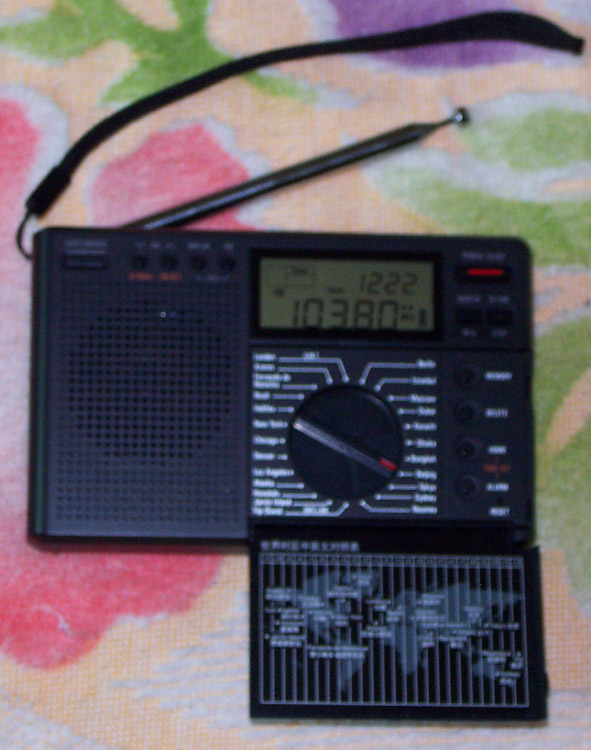 试完三个波段的接收,也到了晚饭的时间,先吃了晚饭,先去洗澡,洗澡完回来已是晚21时,台湾之音广播的时间也到了。打开PL-300WT的电源开关,选择中波,把频率调谐到1098KHZ,PL-300WT的小喇叭清晰地传出台湾之音的广播声音,中波弱台的接收,PL-300WT不会输给其他便携机,看来DSP的效果还是明显的,虽然只是机器内部的模数--数模转换,把PL-300WT的接收性能推上了一个台阶。