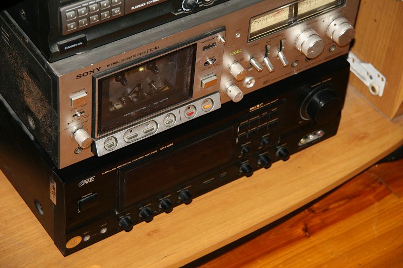 听音设备:110V的松下PS800CD、飞利浦三碟VCD机,ONE功放,杂牌集成电路功放,PROSOUND三单元音箱、B2030P、联想笔记本等等