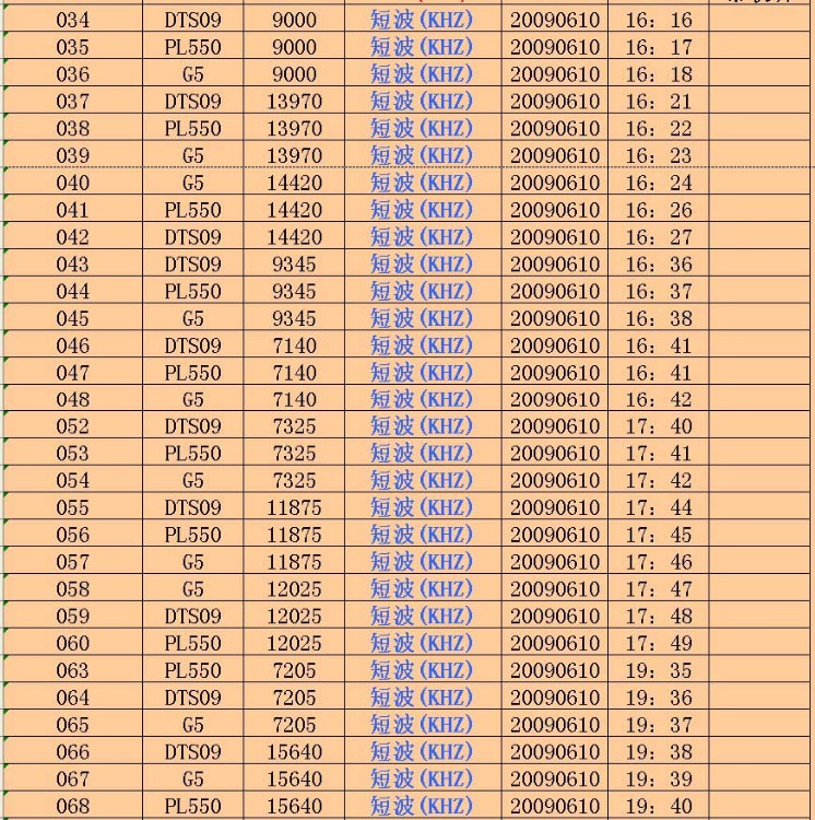 036 G5 9000 短波(KHZ) 20090610 16:18