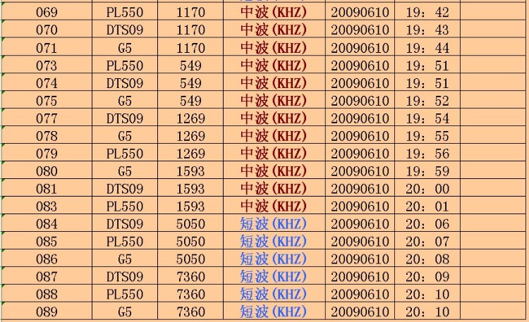 084 DTS09 5050 短波(KHZ) 20090610 20:06