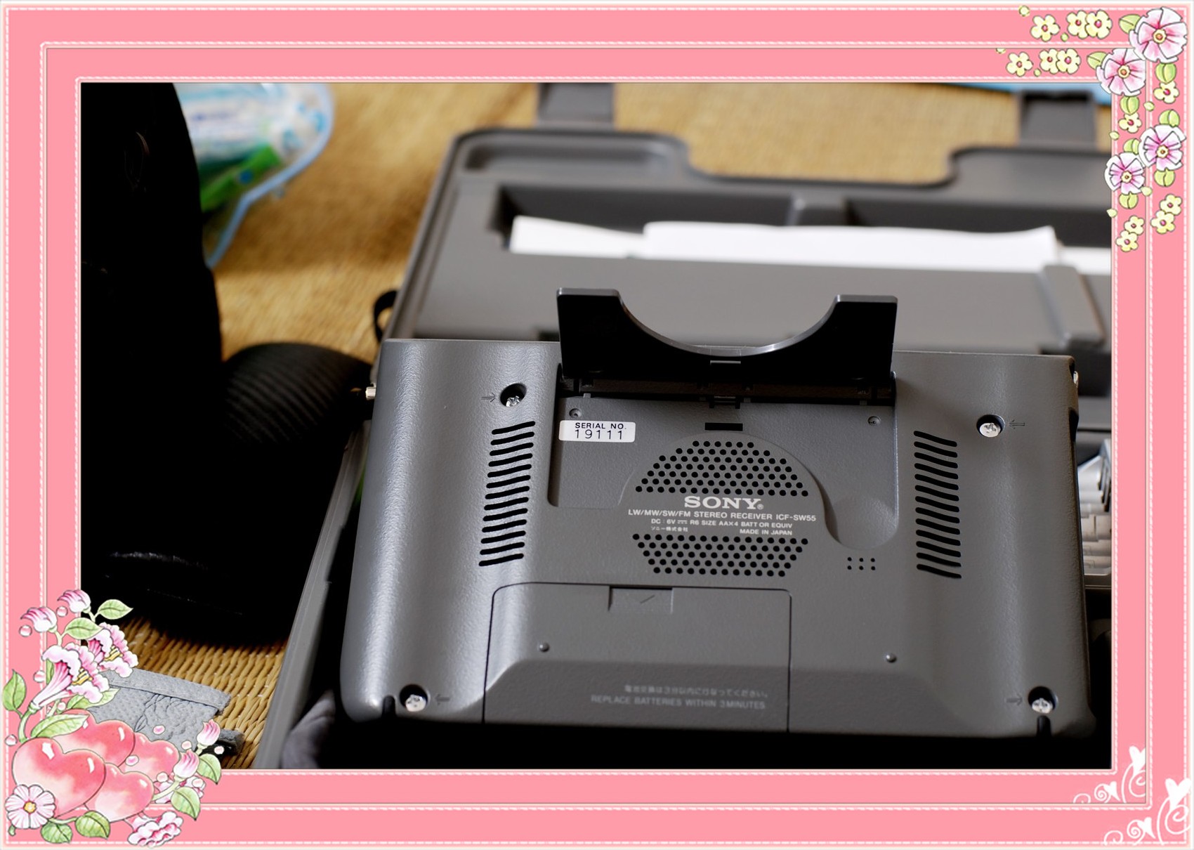 我这个版本的SW55外带着一个塑料盒,我没有从塑料盒上找到产品条码,索尼产品纸盒包装上都能轻松找到产品条码,条码上会有机身序列号,这几年的索尼数码产品还会在条码上打上出厂日期。可惜,我这台SW55的塑料盒上没有贴有任何物件,除了正面的索尼的商标,和底座的地球仪图标。但是值得一提的是,这个盒子提在手里,会有相当的心理满足感——对于爱好广播接收的人来说。